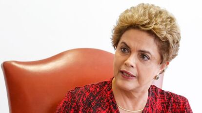 Cinco periodistas de varios países, entre los que se cuenta El PAÍS, se sientan el jueves en torno a una mesa junto a Dilma Rousseff en el enorme despacho de la presidenta de Brasil, en Brasilia. En las últimas dos semanas el país se ha vuelto del revés. No hay día sin sobresalto. Un camarero reparte vasos de agua. Todos ponen las grabadoras en marcha. Pero antes de que nadie pregunte nada, ella misma toma la palabra y comienza a hablar de lo que más le interesa, del proceso de destitución parlamentaria (impeachment) que ya ha echado a andar en el Congreso brasileño y que amenaza con apartarla de la presidencia en menos de un mes si antes no consigue los aliados necesarios, algo ahora muy difícil. “Legalmente es algo muy débil. Y surge porque el presidente del Congreso, Eduardo Cunha [enemigo de Rousseff aunque pertenece al Partido do Movimento Democrático de Brasil, formación en teoría aliada] amenazó al Gobierno: si no votábamos en contra de una investigación contra él, ponía en marcha el proceso. Cunha está denunciado por la Fiscalía de la República porque se le han encontrado cinco cuentas ilegales. No lo digo yo: lo dice la Fiscalía General de la República”.