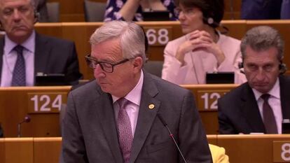 Antes de la votación, Juncker reclamó a Reino Unido celeridad en la notificación de su deseo de abandonar los Veintiocho: “Hasta que no se invoque el artículo 50 no empezarán las negociaciones”, zanjó. El político luxemburgués reconoció la gravedad de la situación e insistió en que hay que acabar con las incógnitas que rodean las relaciones UE-Reino Unido tras el referéndum, al que ha seguido una fuerte caída de los mercados financieros. “No me gusta la incertidumbre”, se quejó Juncker. Y las dudas son ahora mismo inabarcables: nadie sabe con exactitud cuánto durará el proceso de salida ni sus efectos futuros.