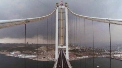 Aún no habían transcurrido 48 horas del ataque suicida en el que perdieron la vida 44 personas y más de 230 resultaron heridas en el principal aeropuerto de Estambul, cuando el presidente turco, Recep Tayyip Erdogan, inauguró el jueves el puente colgante sobre el golfo de Izmit, el cuarto de su tipo más largo del mundo y el segundo de Europa, de 2.682 metros de longitud. El hombre fuerte de Turquía no quiso retrasar la ocasión de cortar la cinta de una obra que reduce sensiblemente la distancia de viaje por carretera entre la capital económica del país y las playas del mar Egeo en vísperas de las vacaciones del bayram. Fue un acto festivo, en el que el campeón de motociclismo turco Kenan Sufuoglu batió su récord de velocidad al atravesar a 400 kilómetros por hora el nuevo puente de Osman Gazi, así llamado en homenaje al fundador de la dinastía otomana en la cercana ciudad de Bursa.