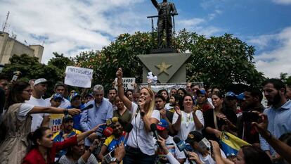 La movilización opositora, vulnerable todavía a las coacciones y obstáculos que el Gobierno pone para socavarla, ha recibido un importante respaldo desde el exterior. El espaldarazo más significativo proviene, quizás, del secretario general de la Organización de Estados Americanos (OEA), el uruguayo Luis Almagro, que ha llamado a las autoridades venezolanas a permitir "las manifestaciones de la expresión popular" y a evitar "medidas que puedan alentar la violencia y generar climas de confrontación". En el comunicado, Almagro revela que Caracas ignoró una petición de la OEA para observar in situ los acontecimientos de hoy y, tras pasar revista a los arrestos de dirigentes opositores durante las últimas horas, condena los actos de intimidación que, dice, "resultan propios de los más connotados regímenes autoritarios a lo largo de la historia". La actitud del Gobierno de Maduro, expresa, "demuestra claramente una negativa de asegurar al propio pueblo condiciones de paz y tranquilidad en el contexto de las manifestaciones" convocadas para hoy. Además, el dirigente de la organización acusa al Ejecutivo venezolano de intentar "criminalizar la protesta" y a la oposición. Y le responsabiliza de cualquier incidente que pueda tener lugar durante la protesta.