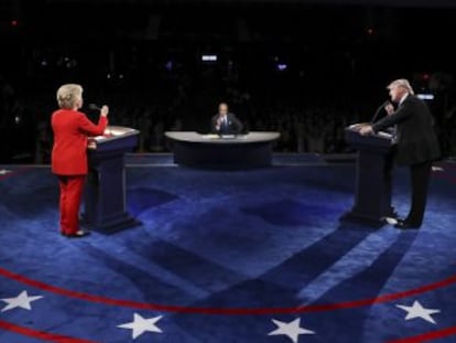 Ella le llamaba a él Donald. Él alternó entre “secretaria Clinton” y “Hillary”. Él aparecía crispado y serio; ella, con una sonrisa condescendiente, como si su oponente fuese un niño travieso y ella su madre o profesora.