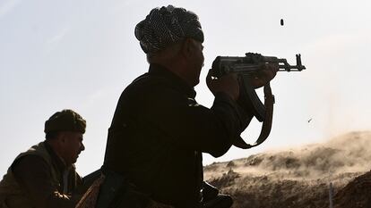 Los peshmergas kurdos que luchan para arrebatar Mosul al Estado islámico (ISIS por sus siglas en inglés) llevan en pie desde antes del amanecer. Se levantaron a las cinco, desayunaron pan con huevos duros y rezaron en unos barracones iluminados con bombillas de bajo voltaje. Formados en columna militar marcharon hacia la ciudad de Bashiqa, a 14 kilómetros de Mosul, el último bastión del califato en Irak. Las excavadoras y los tanques aplastaban lo que encontraban a su paso. Parecía una marcha triunfal, pero los kurdos se han encontrado con una resistencia feroz de los yihadistas. A los misiles tierra lanzados desde una colina y a los cincos bombardeos de la coalición internacional, el ISIS ha respondido con morteros y artillería. El día va a ser más largo de lo que parecía.