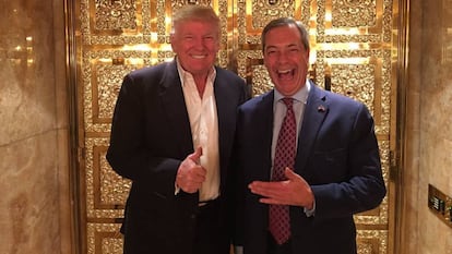 El presidente electo de EE UU se siente parte de un movimiento transnacional que ha captado el descontento de las clases medias con las élites y el miedo a la inmigración y la pérdida de la identidad nacional. Farage fue una presencia habitual en su campaña, y ahora ha disfrutado del privilegio de ser el primer político extranjero recibido en la fortaleza de Trump en la Quinta Avenida de Manhattan.