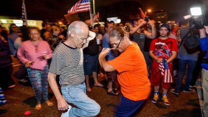 Roselia Cruz, de 75 años, miraba al gentío con una cacerola en la mano y se decía “contentísima”. “Yo era batistiana y siempre he querido ver el momento en que llegara la muerte de Fidel Castro”. Ella arribó a Estados Unidos en 1967. Han pasado 49 años desde aquello. Esta noche ya se había metido en cama y dormía cuando su nieta entró en la habitación. “Me dijo, “¡Murió Fidel!”, y yo le dije, “Tú estás jugando conmigo”, pero se tiró a la cama dando gritos y yo ya me di cuenta de que era verdad y me levanté para venir a celebrarlo. No me dio tiempo ni a vestirme. Salí a la calle con mi cacerola y con todos los vecinos gritando, “¡Se murió Fidel!”, “¡Se murió Fidel!”, “¡Se murió Fidel Castro!”.