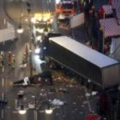 Las imágenes del ataque terrorista ilustran los destrozos causados en el mercado navideño de la capital alemana. El ministerio de Interior alemán informa de que todos los mercados de este tipo permanecerán cerrados en memoria de las víctimas.