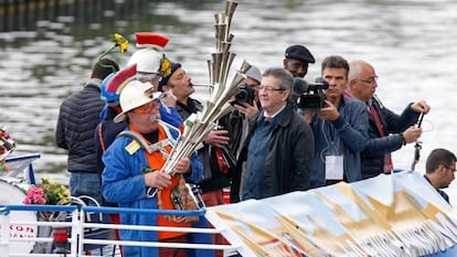 El tiempo es lo único que parece negarse a acompañar a Jean-Luc Mélenchon en su esprín final de campaña. Fuertes nubarrones amenazaban el lunes uno de los últimos golpes de efecto electoral del candidato presidencial del movimiento izquierdista Francia Insumisa: un desplazamiento en una barcaza de río por el Sena que le permitió realizar, en pocas horas, sendos discursos en media docena de puntos de París. Es una manera más de multiplicar su presencia, al igual que el mitin simultáneo en siete ciudades diferentes, incluso en el lejano territorio de ultramar de Guyana, que realizará el martes gracias a los hologramas, una tecnología que ya ha usado en el pasado, aunque nunca de forma tan masiva. La victoria el domingo próximo ya no es algo inalcanzable, pero hace falta un esfuerzo final para movilizar a la inusual masa de indecisos en la que puede estar la llave del pase a la segunda vuelta.