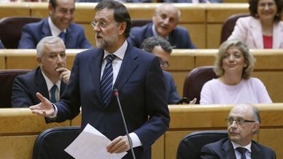 El presidente del Gobierno, Mariano Rajoy, ha defendido por primera vez en público la necesidad de crear eurobonos en la Unión Europea. Lo ha dicho en el Senado, en la ultima sesión de control al Gobierno antes del verano. Rajoy ha centrado casi toda su intervención, en respuesta a una pregunta parlamentaria del socialista Marcelino Iglesias, en las reformas de la Unión Europea y las medidas que lleguen desde Bruselas.