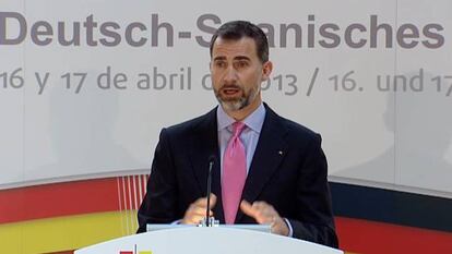 El Príncipe Felipe ha pedido esta mañana en Madrid ante un nutrido grupo de autoridades y empresarios alemanes, huir de "actitudes insolidarias, que a la postre, se traducen en resultados estériles e incluso contraproducentes".