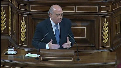 El ministro espetó en esa misma sesión al diputado socialista Eduardo Madina: “¿Le parece que las amenazas, coacciones, injurias o vejaciones a un policía (...) deben quedar sin reproche siquiera administrativo? ¿Le parece a usted que la ocupación de cualquier espacio común público o privado, fuera de los casos permitidos por la ley o la autoridad competente, no merece reproche administrativo?”.