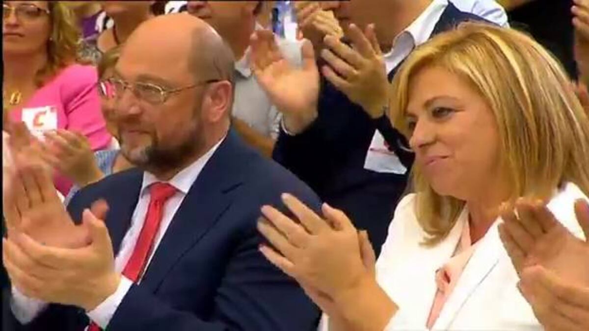 Valenciano se colocó en la estela que le ha dejado el error del PP y lanzó un llamamiento al voto femenino, una de las claves de la campaña. “Pido a las mujeres españolas que el domingo voten, y que voten a quien quieran, pero no a quienes las desprecian”. Y apeló a Martin Schulz, que viene por segunda vez a España en la campaña. El alemán necesita un buen resultado del socialismo en España y en otros países clave para darle él también la vuelta a las encuestas que sitúan al PPE por delante y por tanto al democristiano Jean Claude Juncker en la presidencia de la Comisión Europea. “Con tu presidencia lograremos que todas las mujeres de Europa seamos libres para decidir sobre nuestra maternidad”, le dijo a Schulz de nuevo para explotar el flanco débil del PP con la ley del aborto.