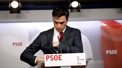 El PSOE quiere presentarse como única alternativa posible a la derecha, con la que asegura que rechaza la perspectiva de una gran coalición tras las elecciones generales del próximo otoño. En este contexto, Sánchez se emplea en denunciar la política de austeridad y recortes del Ejecutivo. “2014 ha sido el año de los recortes laborales y sociales, de menos recursos contra la violencia de género”, ha opinado Sánchez, quien ha anunciado una iniciativa parlamentaria para subir el salario mínimo un 5%. “El 14 termina también con una sentencia del Supremo que echa por tierra la reforma laboral del PP”, ha señalado. El líder de los socialistas ha rechazado también una reforma fiscal “que supone un regalo a las grandes corporaciones y a los grandes patrimonios y olvida el combate contra el fraude”. Además, ha acusado al Gobierno de beneficiar a los fondos de pensiones privados con una reforma cuyo objetivo considera evidente: “Acabar con el sistema público de pensiones”.