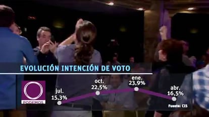 La subida de Ciudadanos (diez puntos en apenas tres meses) le deja a solo a 2,7 puntos de la formación de Iglesias. El partido de Rivera se situaría en cuarto lugar, con un 13,8% en estimación de voto, según el último sondeo. Izquierda Unida se queda con un 4,8% y la presencia de UPyD, con un 1,9%, es prácticamente residual.