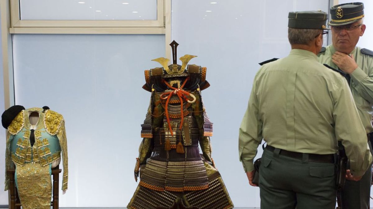 Varios guardias civiles han custodiado en el salón de actos de la Ciudad de la Justicia de Málaga una armadura japonesa de ocho piezas de principios del siglo XX y un traje de luces de color purísima y oro, uno de los muchos que coleccionaba Roca. Sobre una mesa se ha desplegado el capote de paseo bordado en oro que cubre el altar de la capilla de la finca La Caridad, en Marbella. También se ha exhibido una obra de arte (una escultura de origen francés de 1971), una montura de cuero con adornos en plata, una colección de relojes y un lote con siete botellas de vino, una de ellas, marca Petrus, valorada en unos 2.500 euros.
