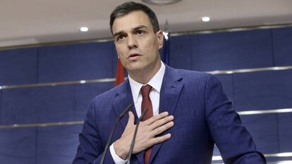 Después de reunirse con el rey Felipe VI, el líder del PSOE, Pedro Sánchez, compareció en el Congreso para anunciar que esta vez le había dicho al rey que no le propusiera para intentar su investidura porque no tenía apoyos. “Ha ganado el ala dura de Podemos; la de Iglesias y Monedero, y no la de Íñigo Errejón, que no tiene la fuerza suficiente”. Sánchez teorizó sobre ese partido. “Iglesias nunca ha querido que gobernase un presidente socialista”, afirmó con dureza que aflojó al iniciar un largo capítulo de agradecimientos al equipo negociador, a la ejecutiva del PSOE y al comité federal. Ese órgano de dirección puso férreas restricciones de pacto el pasado 28 de diciembre pero en todo momento él las hizo suyas con la intención de no asumir las consideraciones de que le habían atado.