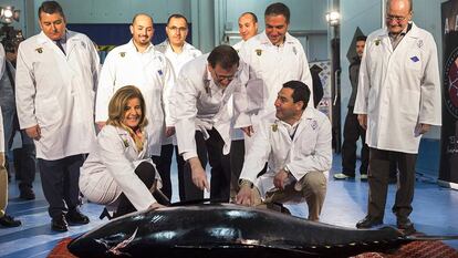 La larga precampaña electoral llevó este sábado al candidato del PP hasta Málaga. La jornada empezó con una caminata en pantalón corto por el paseo marítimo, donde cayeron los primeros selfies. Después, enfundado en una bata blanca, Mariano Rajoy se plantó ante un atún de 180 kilos para presenciar la ceremonia de despiece, conocida como “el ronqueo” porque ese es el sonido que hace el atún al cortarlo. Y fiel a su promesa de no sacarse “conejos de la chistera”, se ciñó a su discurso sobre el riesgo de dejar la incipiente recuperación económica en manos de otros. “Sería un error descomunal hacer tabla rasa de las reformas y volver a 2011. No hay español en su juicio que quiera volver a la cumbre de la crisis", dijo en un polígono industrial, en la empresa andaluza de distribución y alimentación Román y Martos.
