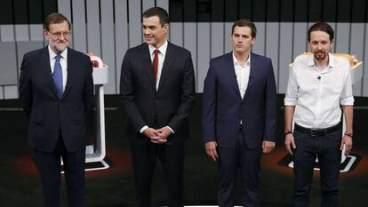Las medidas para combatir el desempleo, promesas fiscales y las secuelas de la crisis medida como la población en riesgo de pobreza han sido los protagonistas de la primera parte del debate entre los cuatro candidatos de los principales partidos para las elecciones del 26-J. Se trata del primer duelo entre más de dos cabezas de cartel en unas legislativas. Mariano Rajoy (PP), Pedro Sánchez (PSOE), Albert Rivera (Ciudadanos) y Pablo Iglesias (Unidos Podemos) han confrontado sus programas electorales con una montaña de cifras. No siempre han sido rigurosos. Estos son algunas de las cifras que más han destacado o sobre las que los candidatos no han sido precisos.