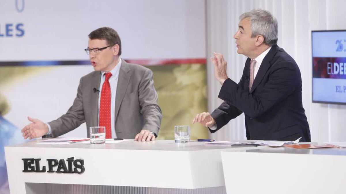 Luis de Guindos (PP), Jordi Sevilla (PSOE), Nacho Álvarez (Unidos Podemos) y Luis Garicano (Ciudadanos), representantes económicos de los cuatro principales partidos, han participado este martes en el debate organizado por EL PAÍS. Se han enfrentado a cuenta de la calidad del empleo, pero también han discutido sobre el modelo económico que propone cada formación. Mientras el PP y Ciudadanos plantean rebajar los impuestos, con diferentes calendarios, para mantener el crecimiento económico, el PSOE y Unidos Podemos plantean subidas en diferentes figuras tributarias y aumentos del gasto social.