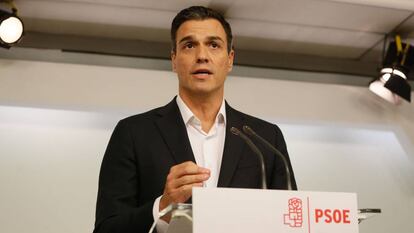 Pedro Sánchez vincula el triunfo de los críticos con la abstención del PSOE en el Congreso para que gobierne Mariano Rajoy. Estos formarían una gestora que conduciría al partido a esa decisión, según ha explicado.