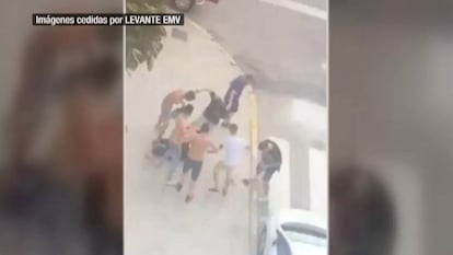 Una pelea entre turistas a la salida de una discoteca de Gandia (Valencia) terminó el domingo en una brutal paliza de siete jóvenes contra uno. Un vecino grabó la agresión, en la que se repiten las patadas y puñetazos al chico que está en el suelo sin poder defenderse. Los siete agresores han sido multados con más de 1.000 euros cada uno, ha informado la policía local.