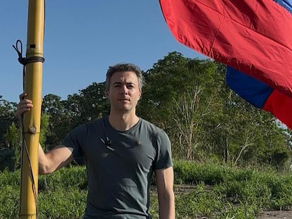 El exalcalde de Medellín, precandidato por el Pacto Histórico, iza una bandera colombiana en la isla Santa Rosa de Loreto, en la frontera del Amazonas, objeto de disputa entre ambos países
