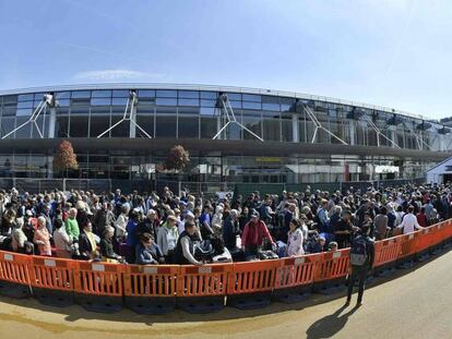 Los pasajeros aguardaban más de dos horas de pie para cruzar las nuevas carpas de seguridad para acceder al aeródromo
