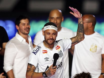 Miles de aficionados dan la bienvenida al brasileño, en horas bajas tras la experiencia saudí, en el club que alumbró a los dos astros