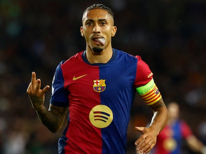 Los azulgrana, liderados por la mejor versión del capitán Raphinha, autor de tres goles, completan un extraordinario partido contra los alemanes en un encendido estadio de Montjuïc