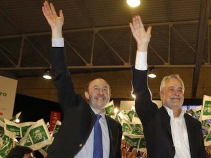 Griñán, Rubalcaba y González piden a los andaluces que resistan a la ola de la derecha El PP no oculta la euforia y reclama acabar con el "color tenebroso"
