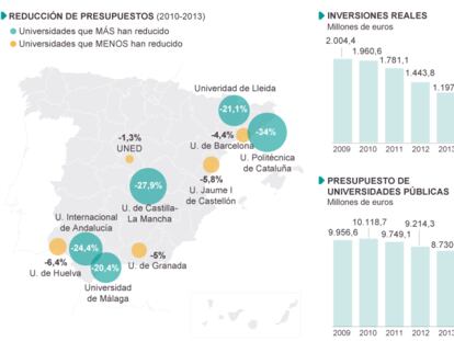 El presupuesto de los campus cae un 13,7% desde 2010 Las inversiones y la plantilla son las partidas más afectadas cuando la crisis ha llenado las aulas