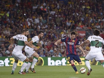 El conjunto azulgrana recupera su mejor funcionamiento como equipo y el brillo del delantero argentino para derrotar al Elche (3-0) con dos tantos de La Pulga y otro del canterano Munir