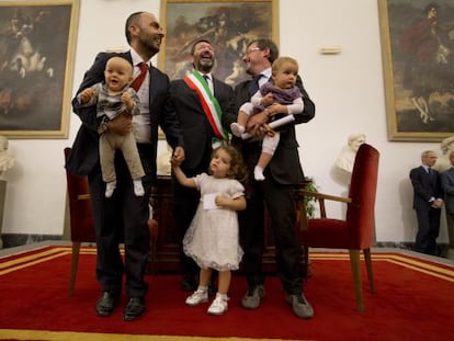 Ignazio Marino, del Partido Democrático, organiza una solemne ceremonia en el Registro Civil de la capital italiana