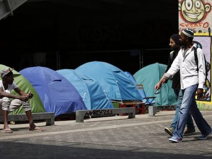 Refugiados acampados en París narran su dramática huida a Europa en barcas o tras saltar la valla de Melilla