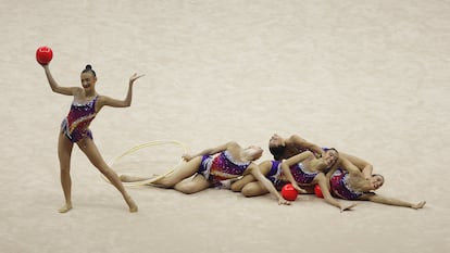 En una jornada llena de errores, Japón se colgó el oro y Brasil obtuvo la plata. El conjunto español, además, logró el pase a la final de cinco cintas y ejercicio mixto del domingo