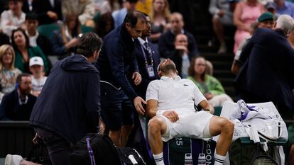 El búlgaro se rompe cuando había acorralado al número uno, quien previamente había sufrido una mala caída que le dañó el codo e iba dos sets abajo (6-3, 7-5 y 2-2)