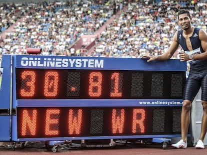 El sudafricano mejora en Ostrava la mejor marca de nunca en 300m, conseguida por Michael Johnson en 2000