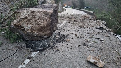 Un enorme bloque de roca y tierra impide circular por la N-232 en el norte de la provincia burgalesa
