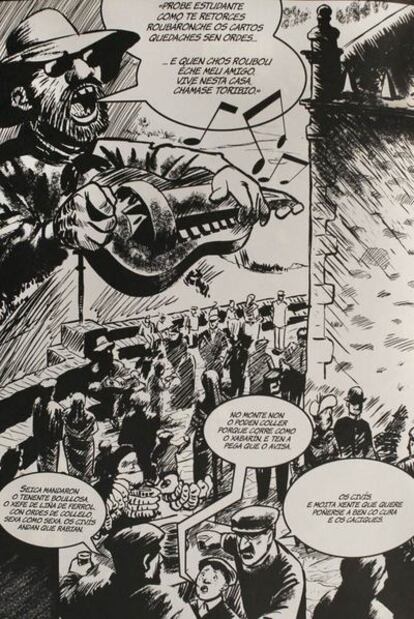 Los escritores y cronistas de la época, maravillados por el halo romántico que acompañaba a los fugitivos, no se cansaban de repetir que Mamed Casanova, Toribio, el más famoso bandolero gallego de principios del siglo XX, tenía tanta fuerza que ni los grilletes de las numerosas cárceles en las que estuvo preso podían con él, o que una urraca le avisaba de la presencia de la Guardia Civil durante los tres años que vivió huído en el monte. Retratado en infinidad de crónicas, artículos y novelas - el escritor Higinio Puentes noveló su vida en 2000 -acaba de llegar a las librerías O fillo da furia (Demo Editorial, 2010), un cómic creado a cuatro manos por el periodista Manolo López Poy y el diseñador gráfico Miguel Fernández. A modo de novela negra, el género preferido de Fernández, la obra retrata las peripecias de Mamed Casanova y su evasión desesperada de la justicia, que lo acusaba de robar, violar y matar en las tierras de Ortigueira.