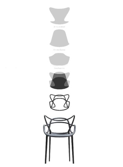 Jacobsen es uno de los favoritos en la casa de empeño del pasado. También Philippe Starck ha echado mano de él. Y lo ha hecho con todas las de la ley: reconociendo el préstamo y rindiéndole homenaje. Con tantos honores, no puede haber plagio en un diseño. Pero Starck es mucho personaje para lanzar una simple oda a la silla más homenajeada del mundo. Así, en su silla Masters, ha cuajado la cuadratura del círculo. Ante la duda de qué silla de las llamadas clásicas modernas era la mejor, el francés ha refrito el genio orgánico del finlandés Eero Saarinen (y su silloncito Tulip, producido por Knoll), ha revisitado la ligereza de la legendaria Plastic Chair de Ray y Charles Eames (Vitra) para alargar el respaldo, y, finalmente, ha absorbido la curva de la cintura de Jacobsen (un arquitecto de edificios rectilíneos y muebles curvos) para cuajar su propuesta de futuro: un baile de sillas cincuentonas.