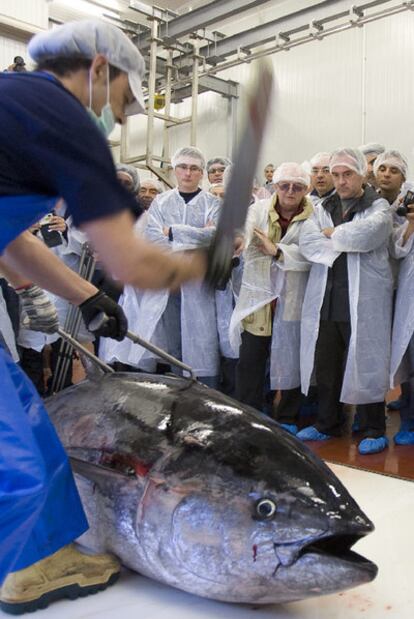 Y cuando se dice todo es todo. Los cocineros más prestigiosos de España pudieron degustar diferentes recetas en el restaurante El Campero, definido como el templo gastronómico del atún rojo. Y en el menú se incluyó la piruleta de hueva de leche, elaborada con el órgano sexual del atún macho cargado de semen y aderezado con mermelada de cebolla.