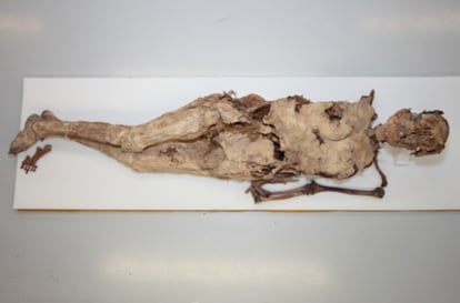 Los investigadores que escudriñan las tumbas reales del monasterio de Santes Creus (Tarragona), en el marco de un proyecto dirigido por el Museo de Historia de Cataluña (MHC), y que hace apenas unas semanas, el pasado marzo, mostraron la momia inviolada del rey Pere el Gran (Pedro III de Aragón), no se hacían grandes ilusiones con su nuera Blanca, pues los ultrajes a la misma están muy documentados y a la vista -por endoscopia- había un batiburrillo poco esperanzador. Sin embargo, ha resultado que la reina estaba casi toda en su sepulcro, aunque eso sí a trozos (y revuelta con dos hombres: no vaya ello en su deshonra, la mezcla fue post mortem). Ha habido que volver a armarla pacientemente, a la soberana, juntando restos como quien monta un puzzle hasta restituir la posición anatómica. Pero el resultado es espectacular.