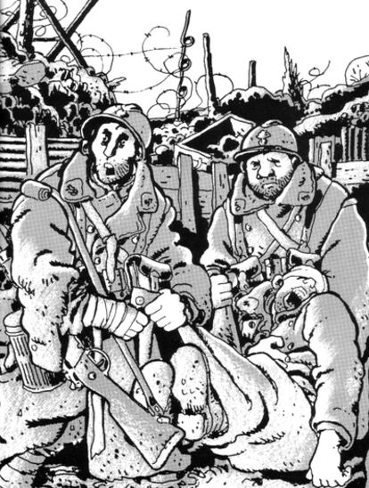 El miedo para Jacques Tardi tiene cara de soldado raso, con el casco calado, la mirada perdida y el rostro cadavérico. En la obra del veterano historietista francés (Valence, 1946), las atrocidades de la I Guerra Mundial son un tema casi omnipresente. Porque más que las gestas militares, Tardi quiere retratar la absurdidad del conflicto y las historias a pie de trinchera en un cómic claramente antimilitarista y bien documentado gracias a la colaboración con el historiador Jean Pierre Verney, que hace ya más de 30 años que dura.