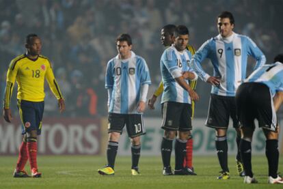 Colombia tuvo las mejores ocasiones del duelo. Primero Rojas, que no acertó a meter bien el pie, solo, en la frontal de área pequeña y más tarde, tras una pérdida de balón de Milito, en una jugada en la que el árbitro no se atrevió a pitar un clarísimo penalti de Burdisso a Ramos, Moreno, sin nadie bajo los palos, remató al lateral de la portería de Romero. El portero tuvo que intervenir dos veces más antes del descanso para negarle el gol al equipo del Bolillo Gómez y volvió a aparecer en el segundo tiempo en otro par de acciones. Argentina atacó mal, así que defender bien era imposible.