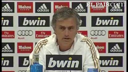 El técnico del Real Madrid, José Mourinho, ha comparecido hoy ante los medios después de que su equipo cayese (1-3) el pasado sábado en el clásico del Bernabéu frente al Barça. Enfundado en una chaqueta completamente blanca, con sus siglas, el preparador portugués ha defendido la situación de su equipo y ha enviado un recado a la hinchada del equipo blanco. "¿Un mensaje para la afición? Dos palabras: somos líderes", ha enfatizado el luso, centrado desde el inicio de la conferencia de prensa en dejar de lado el duelo contra el Barcelona y pensar ya en el envite copero de mañana: "Hoy solo hablo de la Ponferradina". No ha podido evitar, sin embargo, que el clásico y el estado anímico de su plantilla tras la derrota canalizasen la mayoría de las cuestiones. "Si el mundo está cerca de acabarse no es aquí ni por nosotros", ha manifestado; "ya dijimos que ni ganar ni perder nos haría perder el equilibrio. De verdad, no cambiaría nuestra situación con nadie, con nadie".