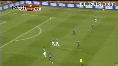 México empezó por defender fuerte, sin concesiones, a veces incluso con dureza. No dejó jugar a Francia y recurrió con reiteración a las faltas tácticas en la línea de tres cuartos mientras se desplegaba con vértigo a partir del triángulo formado por Giovani y Vela en las bandas y Guille Franco como falso ariete. Los puntas mexicanos eran tan veloces como selectivos: acababan la mayoría de sus jugadas con un tiro que enfocaba la portería. Lloris tuvo que poner mucha atención porque sus defensas andaban tan desafinados en el corte como en las cesiones.
