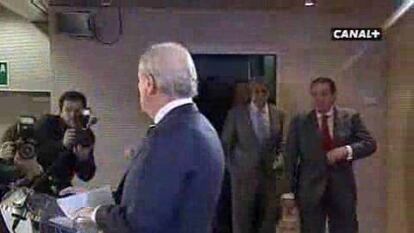 "Puedo jurarles por mi honor, y si apelo al honor de mis directivos no creo que me equivoque, que ninguno de nosotros ha tenido relación alguna con cualquier tipo de amaño en las elecciones", ha empezado el presidente del Real Madrid su rueda de prensa, con un semblante serio, con el propósito de convencer a los medios de que no son culpables de infiltrar individuos sin derecho a voto para adulterar el resultado de las votaciones a su favor en la Asamblea de Socios Compromisarios del pasado 7 de diciembre. "Habrá una comisión que investigará los hechos que aparecen hoy en un diario deportivo, el diario Marca, y si se comprueba que las informaciones son ciertas se tomarán medidas", ha insistido el presidente.