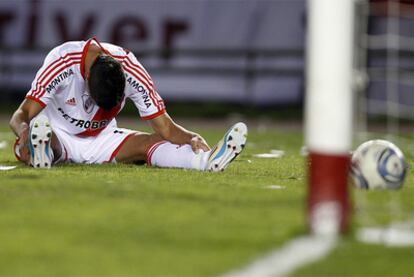 La fotografía es una auténtica tragedia. Aguanta sobre el césped el veterano Almeyda (38 años) con la mano sobre el muslo, agarrotado y quizá roto, con lágrimas en los ojos al salir del vestuario. Marca el rival Fuertes, de Colón pero con pasado millonario, y no lo celebra, sino que pide perdón al tiempo que silencia a la grada, tan rota como el muslo de Almeyda. Pone el técnico Juan José López, JJ, a tres delanteros porque así se reclama desde los vomitorios y tampoco carbura el equipo, igual de quebrado que la grada y que el músculo del capitán. Y enmudece el técnico -se negó a dar la rueda de prensa tras el partido- porque le insultan sin cesar los hinchas, hartos de tanta rotura, de enfrentarse a una más que posible promoción de descenso por primera vez en 110 años de existencia. Solo tres equipos argentinos no han descendido en su historia: Boca, Independiente y River. "Y nos vamos a dejar la vida para que eso no cambie", sentenció el jugador Leandro Caruso tras meterle el gol a Colón. Pero no depende de ellos.