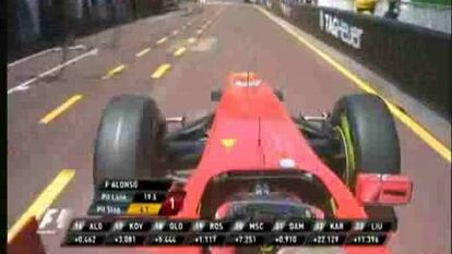 Sin embargo, un accidente de Massa en la 34ª vuelta trastocó la carrera. Un arriesgado adelantamiento de Hamilton sobre Massa acabó con un toque entre los dos coches y el posterior accidente del brasileño en el interior del túnel, donde el británico concluyó su adelantamiento. Aquello provocó la entrada del coche de seguridad y el paso rápido por el taller de Alonso, que aprovechó para colocar los más duros (blandos). Vettel optó por no cambiar y coger el liderato, una decisión muy arriesgada, porque llevaba ya 19 vueltas con sus neumáticos (blandos). Hamilton marcó la carrera, pero lo perdió todo al ser sancionado con un paso obligatorio por el pit-lane.