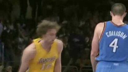 Los Lakers doblegaron , no sin complicaciones, a los Thunder de Oklahoma (105-98) para lograr su séptima victoria consecutiva, la noche en la que Kobe Bryant se convirtió en el jugador más joven en sobrepasar la barrera de los 23.000 puntos. Bryant acabó con 34 puntos, mientras que el español Pau Gasol, en su meteórica línea, contribuyó con 22 puntos y 14 rebotes. Lamar Odom añadió 12 tantos y 18 rebotes. Por los visitantes, Kevin Durant fue el más destacado con 31 puntos y 10 rebotes.