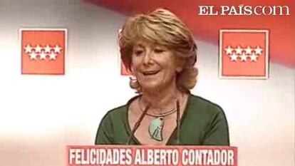 Horas antes, en la Real Casa de Correos, la presidenta de la Comunidad de Madrid, Esperanza Aguirre, se refirió al de Pinto como "uno de los grandes de la historia". "Es el mejor ciclista del mundo, el mejor en todos los terrenos", afirmó Aguirre, que al inicio del acto hizo entrega al ciclista madrileño de una placa conmemorativa. "Para ganar el Tour hay que tener unas grandes cualidades físicas y saber sufrir. Hay que tener un equilibrio psíquico, un afán de superación y unas cualidades humanas que sólo tienen los grandes campeones. Esos que salen muy de tarde en tarde en la historia. Y Alberto Contador es uno de ellos", aseguró durante la recepción al corredor pinteño.