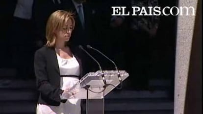 Chacón ha empezado su discurso resaltando el trabajo de los militares que defienden "la paz y la legalidad en el mundo". "Sentimos orgullo por su labor", ha añadido. La ministra se ha referido a su antecesor en el cargo como un "excelente servidor público", del que ha destacado tres virtudes, en su opinión también aplicables a las Fuerzas Armadas: "Trabajo, discreción y eficacia".